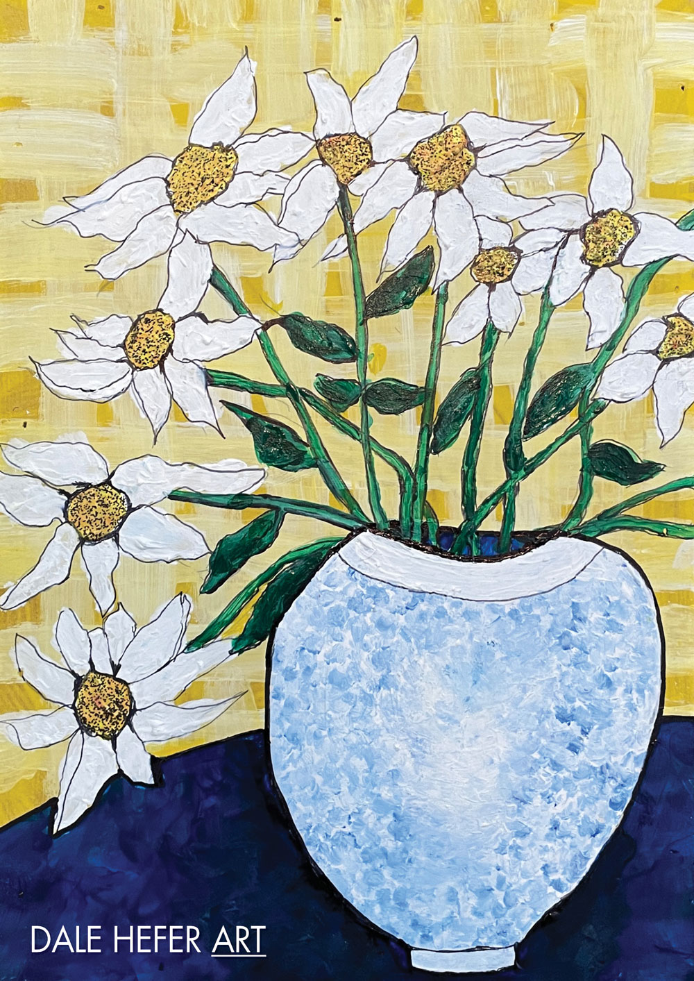 She paints in acrylic on wood or canvas under her Proudly Imperfectâ„¢ brand.